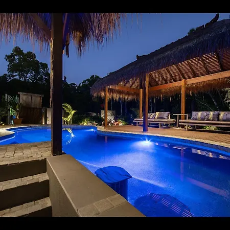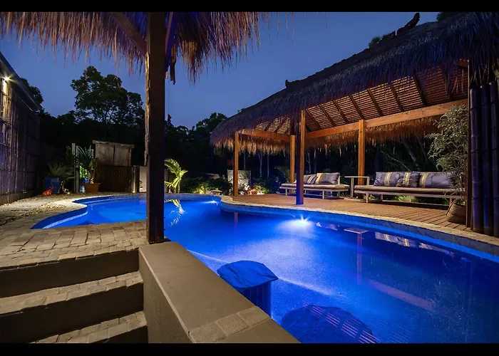 Villan Warm Spa, Pool & Fireplace - Coolum Bali Gardens Coolum Beach med 1 sovrum, som ligger 3 km från Sandy Massage, har en privat pool, bubbelpool och hydromassagebadkar, vilket garanterar en avkopplande vistelse.